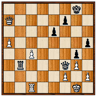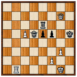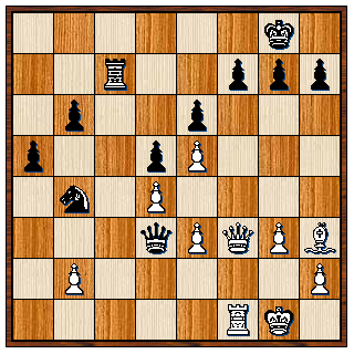 volgde nog 28…Pc2 29. Kf2 Db3 30. Df4 h6 31. Lg4 Dxb2 32. Kg1 Da3 33. e4 De3+ en opgegeven