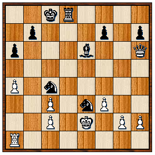 In de partij Andries Mellema tegen Olger van Donk heeft wit door een simpel trucje een pion gewonnen, maar erg tevreden was Andries niet, dat kon je wel zien aan zijn houding achter het bord. Er wordt nog van alles geschoven en geruild, maar wit schiet daar niets mee op. Op een gegeven moment staat het als volgt: