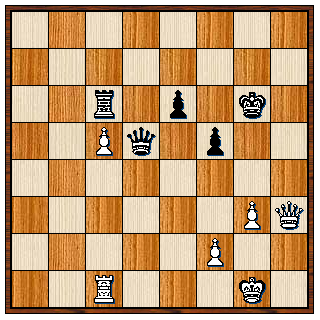 Zwart heeft zojuist 70…Dd5? Gespeeld, waar 70…De5 had gemoeten. Er volgde nog: