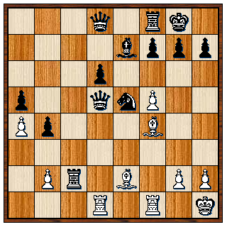 19..Pcxe5 20. dxe5 Lxe3 21. a4 Lg5 22. axb5 axb5 23. Ta5 Dc7 24. Te1 Tc8 25. Txb5 Dc3 26. Db1 Tc7 27. Pc5 Kc8 28. Txb7 Txb7 29. La6 en zwart verliest materiaal. Rienk speelde nog lang door, maar het was niet meer te keepen.