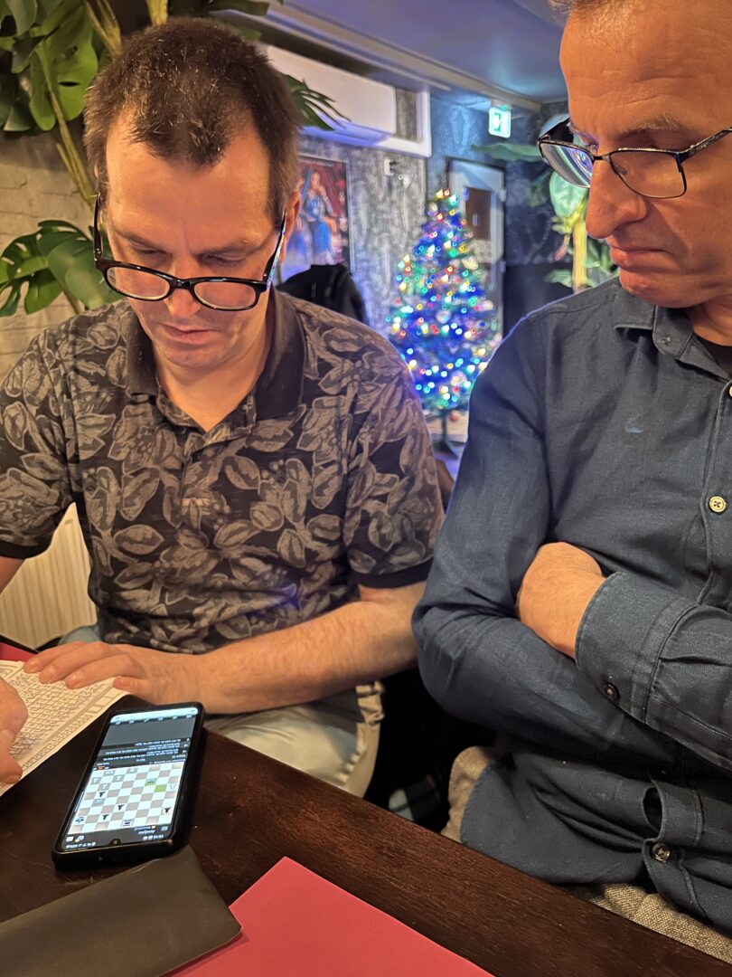 Op 13 december 2025 was de thuiswedstrijd tegen Woerden. Door werk en andere verplichtingen waren er een paar afzeggingen en mocht ik invallen en dan maar gelijk aan het topbord. Het strijdplan was om aan de hogere borden de schade beperkt te houden en aan de lagere borden toe te slaan. Alwin was eigenlijk ziek, maar kwam toch en dat hebben we geweten.