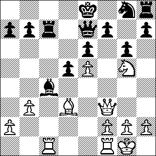 In de stelling heb ik zwaktes gemaakt op de koningsvleugel en heeft mijn tegenstander door tactische problemen 17…Lc4 moeten spelen. De laatste zet was 18…Dc5-e7.