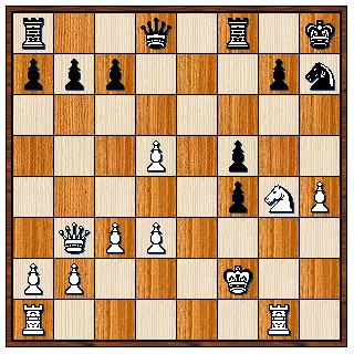 18…Kxh6 19. Pe4 Kg7 20. Pxg5 h6 21. Ph3 Lxh4 22. f4 De7 23. Dd2 Rfe8 24. Lf2 Lxf2+ 25. Pxf2 Dh4 26. Le4 Dg3+ 27. Kh1 Txe4 28. Pxe4 Lxe4+ 0-1
