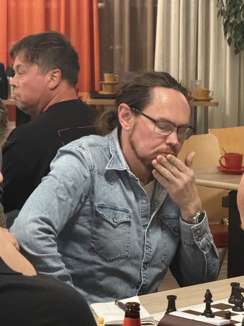 Na hevige discussie over de opstelling – er lag een wiskundig model op tafel van recent overleden Stefan, waaruit zou blijken dat een opstelling waarin de zwakste speler aan het eerste bord zou spelen en de sterkste aan het laagste bord kansrijker zou zijn – besloten wij ten elfder ure na de kerkdienst toch maar de normale opstelling te kiezen.