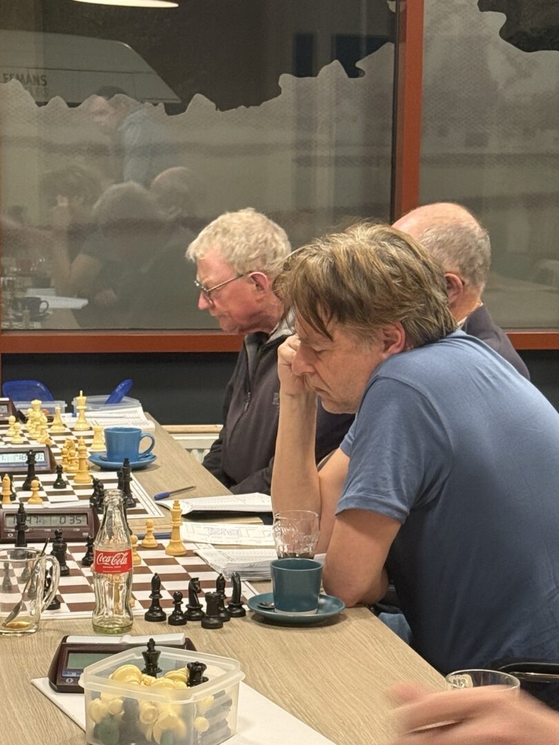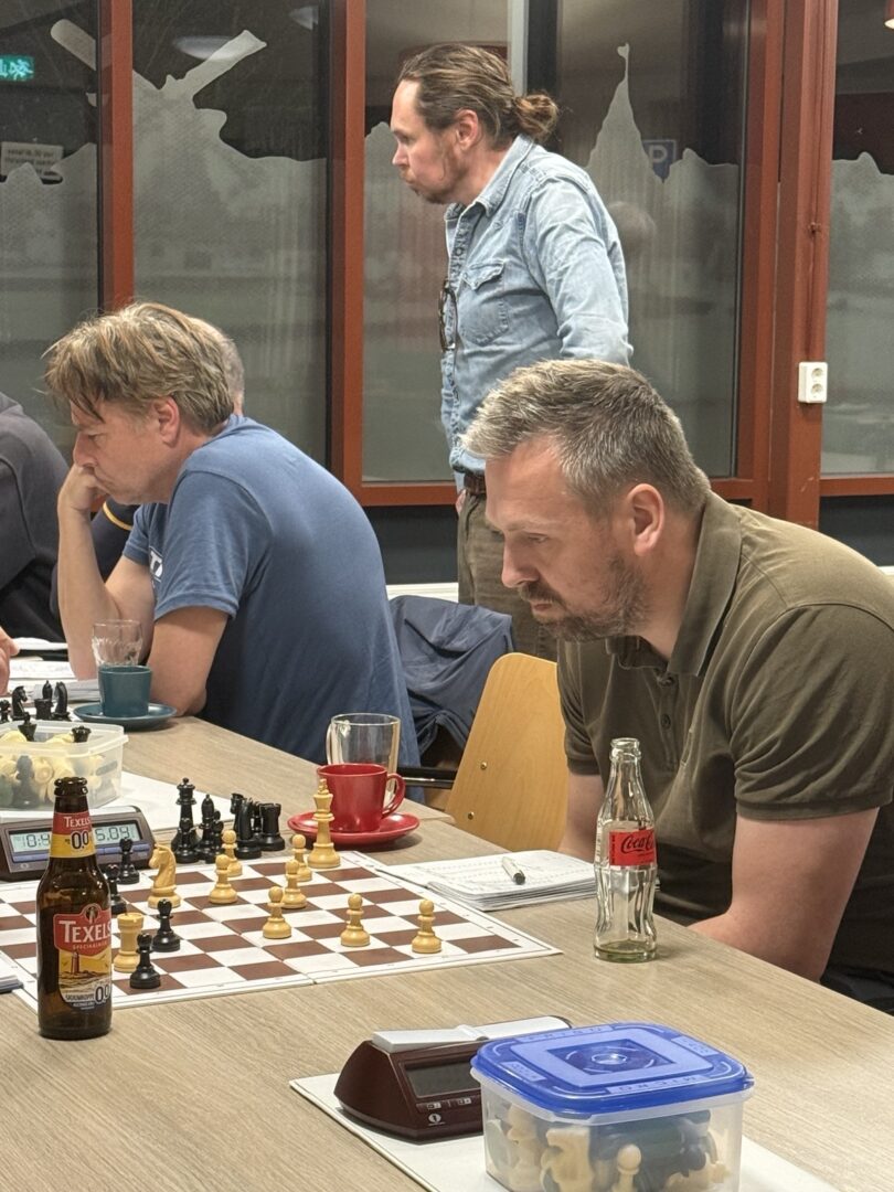 Frank verloor inderdaad, zijn tegenstander speelde het prima uit en daarmee kwam de einduitslag op 3,5 – 2,5 voor ons. MSV 2 zal het waarschijnlijk ook wel redden en daarmee zijn alle teams verzekerd van volgend seizoen spelen in de zelfde klasse, want ons KNSB-team had dat ook al voor elkaar.