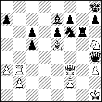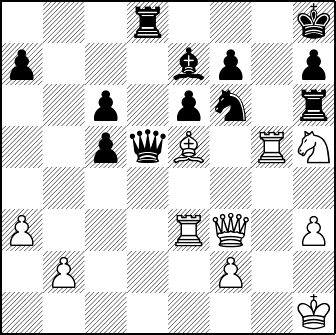 Interessant is ook 24…Dd5 25. Tg1 Th6! (enige zet, de winst na 26…Tdg8? is het makkelijkst en mooist na 27. Td1!) 26. Tg5 (diagram)