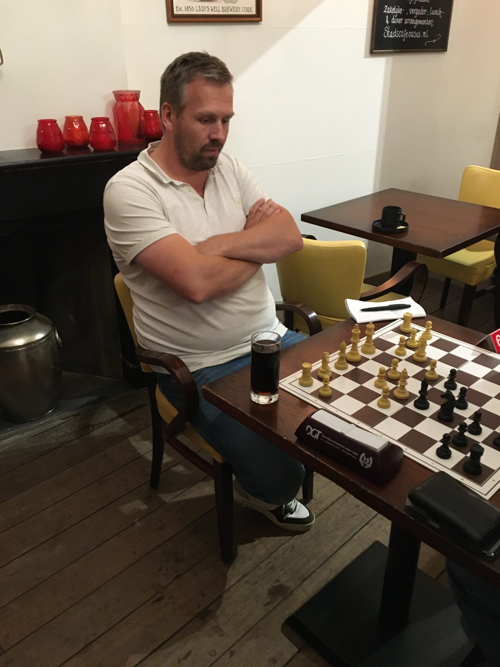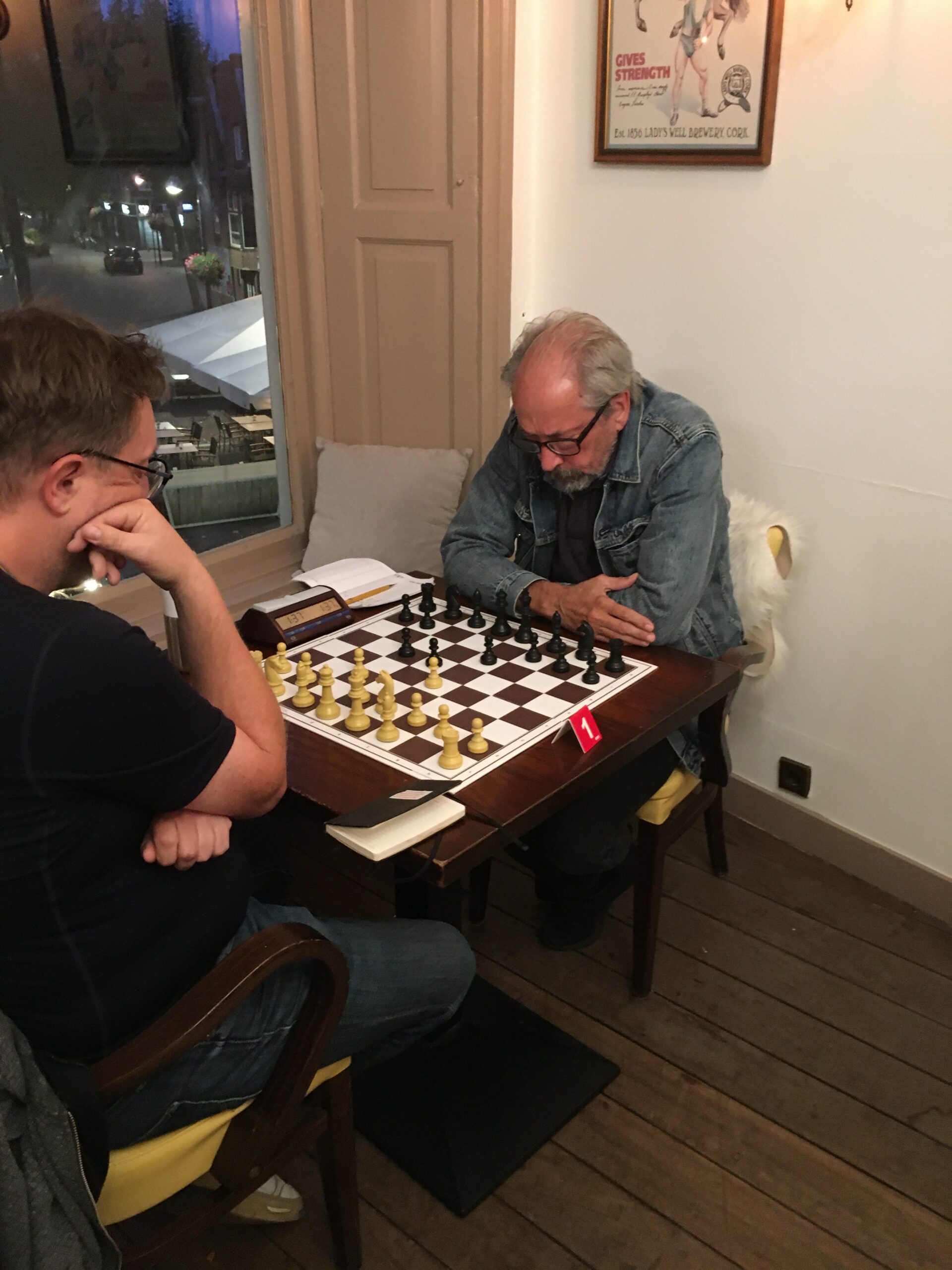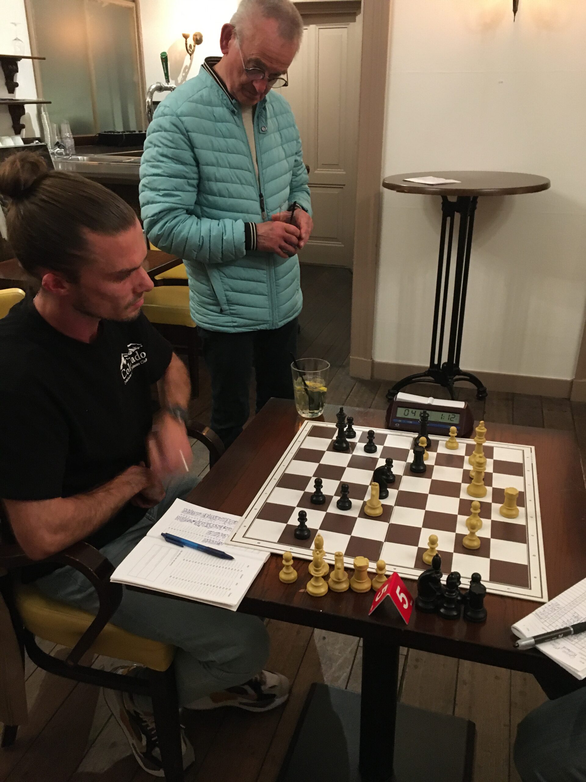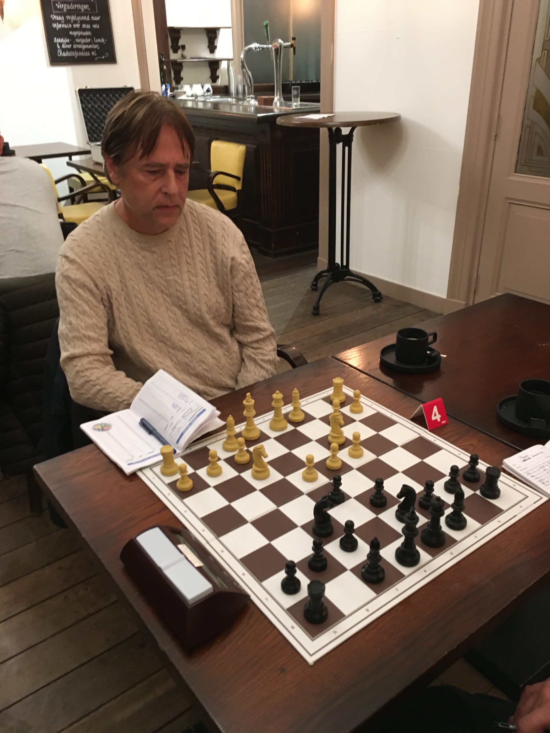 Richard V. kreeg een wat verbrokkelde stelling en leek onder druk te staan, maar hij lanceerde de ene na de andere dreiging zoals we van hem gewend zijn. Op een gegeven moment zag de tegenstander iets over het hoofd en Simsalabim, daar ging eerst een toren en toen de dame. Zo stond het weer 1.5 – 1,5.