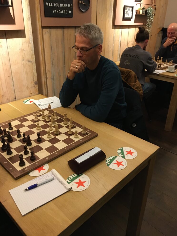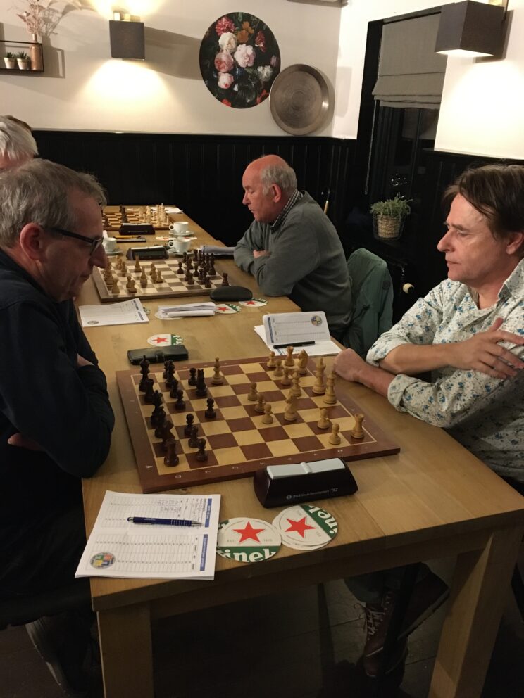 Frank speelde door tot het gaatje, maar meer dan remise zat er niet in en zo verloren wij met 2,5 – 3,5. Jammer er had meer in gezeten, maar de bordpunten kunnen wel eens heel belangrijk worden, want het veld staat dicht op elkaar.