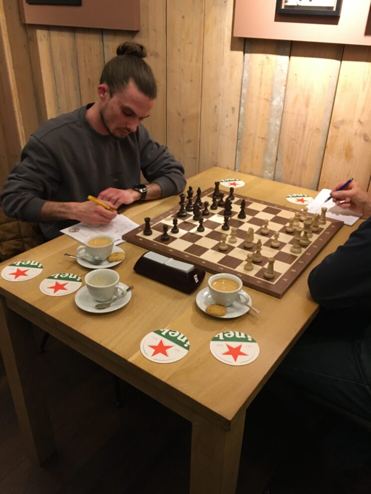 Stefan probeerde ijzer met zijn handen te breken, vroeg teveel van zijn stelling en verloor materiaal en daarmee de partij. Toen stond het weer gelijk.