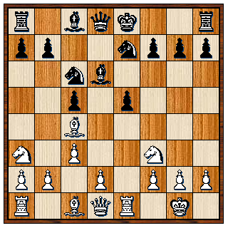 kon ik 9. Pg5 spelen waarna zwart al verloren staat. Er dreigt ook nog 10. Dh5. Zwart moest haast wel 9…Tf8 spelen. Ik won twee pionnen en alhoewel ik het niet op zijn handigst speelde kon ik afwikkelen naar een straal gewonnen eindspel. Zo stond het weer gelijk.