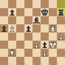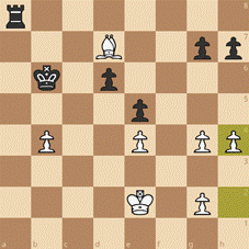 Toch nog een misser op de valreep, Le5 Txb7 Lg3+, gevolgd door Lxh4 en Lxe7 lijkt me niet helemaal de bedoeling. 39…Lf6? 40.h5 Lxe7 41.Lg6+ 1-0