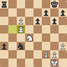Een heel logische zet, die daarom ook geen vraagteken krijgt, maar nu kan Roel ontsnappen met een halfje door Te6 te spelen. De sterkste zet was hier 27…Pe5!! 28.Txe4 Lxe4. Als je wat voor staat, twee stukken inmiddels, kun je ook wat teruggeven… Remise kwam helaas niet in het woordenboek van Roel voor: