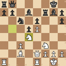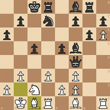 Als de arme Vincent Pelgrom wist tegen wie hij speelde, zou hij deze 14.a4 beslist hebben heroverwogen. Met Micha tegenover je weet je wat je kan verwachten. Als Koekiemonster die een trommel koekjes ziet, of als de schrijver dezes die een Indiaas gerecht ziet stortte hij zich op het kleine ding 14…bxa4 15.Lc2 Pb6 en u vermoedde het al: wit zag zijn pion nooit meer terug. Met een leuke petit combination werd het pleit beslecht: