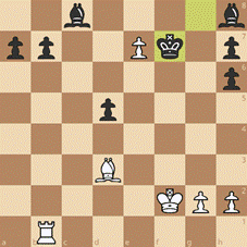 Gelukkig dachten we allebei dat het gespeelde 21…Pxd5 geforceerd was hier, maar er zit iets fraais in: 21…Pg4+ 22.Kg1 Pe5! 23.Lxe6+ Kh8 24.De4 Tf6 25.Lf5 en nu winnen zowel Tg8+ als Taf8 hier het geofferde materiaal terug met behoud van aanval. Over en weer maakten we nog wat fouten, onderweg naar een eindspel met ongelijke lopers. Micha had goed opgelet na zijn zeperd tegen Max Euwe (zie verslag) want hij had direct herkend: dit zijn niet alleen ongelijke lopers, maar ook ongelijke kansen. Vaak onderschat je achter het bord hoe lastig zoiets te verdedigen is. Overal minidreigingen en als je ze dekt gebeurt er aan de andere kant van het bord weer wat.