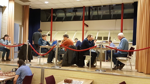 Op dat moment waren Frank Thuring (op bord 2) en invaller Piet Nieuwenhuizen (op bord 5) nog bezig. Het was tegen half 12 toen beide mannen met opgeheven hoofd hun tegenstanders de hand konden geven. Beiden verweerden zich heel knap maar kwamen net te kort.