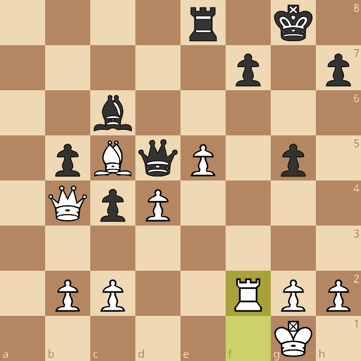 1…Txe5 2.dxe5 Dd1+ 3.Tf1 De2 4.Tf2 Dd1+ 5.Tf1 De2 remise.