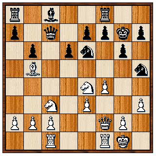De zet 4. Lg5? Is overduidelijk fout. Er volgde 4…Lxf2+ 5. Kxf2 Pe4+ 6. Ke1 Dxg5 7. Pf3 De3 en Piet geloofde het verder wel. Volgens Bas was ook mogelijk 4…Pe4. Nu kan 5. Lxd8 niet wegens Lxf2 mat. Na 5. Le3 Lxe3 6. fxe3 Dh4+ 7. g3 Pxg3 is het ook hopeloos.