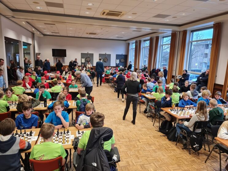 Maar liefst 126 kinderen hadden zich aangemeld voor het Meppeler Basisschool Kampioenschap. Nog nooit deden er zoveel kinderen mee. Ivm. ziekte en toch nog een paar afmeldingen bleven er de eerste dag toch nog 119 kinderen over. Ondanks de hoeveelheid kinderen was het muisstil zodra ze eenmaal begonnen waren met de partijen.